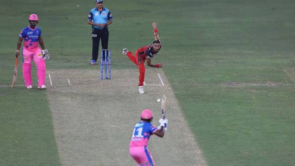 This kept flying sixes and fours in all-overs. In the end, rajasthan were 56 for no loss. however, even then, Bangalore's Mohammad Siraj bowled well the 6th over and continued to bowl at a steady pace. He bowled 4 balls at 140 kmph in the over and so even in pourable, Siraj 6th conceded just 4 runs.