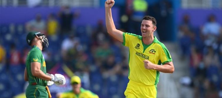 ఐసిసి టీ20 ప్రపంచ కప్ సూపర్ 12 స్టేజ్ ఈ రోజు ప్రారంభమైంది. అందులో భాగంగా మొదటి మ్యాచ్లో ప్రస్తుతం ఆస్ట్రేలియా, సౌత్ ఆఫ్రికా జట్లు తలపడుతున్నాయి. అయితే ఈ మ్యాచ్లో టాస్ గెలిచి బౌలింగ్ తీసుకున్న ఆస్ట్రేలియా జట్టు అనుకున్న విధంగానే సౌతాఫ్రికా జట్టును కట్టడి చేసింది. సౌతాఫ్రికా జట్టుకు మంచి ఆరంభం దొరకలేదు. రెండవ ఓవర్లోనే జట్టు కెప్టెన్ కేవలం 12 పరుగులు చేసి కెప్టెన్ బావుమా ఔట్ కాగా... మూడో వారంలో మరో ఓపెనర్ క్వింటన్ డికాక్ 7 పరుగులు చేసి వెనుతిరిగాడు. ఆ వెంటనే కేవలం రెండు పరుగులు చేసి వాన్ డెర్ డస్సెన్ అవుటయ్యాడు. దాంతో సౌత్ ఆఫ్రికా జట్టు 23 పరుగులకే మూడు వికెట్లు కోల్పోయింది. అయితే ఆ తర్వాత వచ్చిన మార్క్రమ్ 36 బంతుల్లో 40 పరుగులు చేసి ఇన్నింగ్స్ నిలబెట్టాడు. క్లాసెంక్ 13 బంతుల్లో 13 పరుగులు చేయగా... మిల్లర్ 18 బంతుల్లో 16 పరుగులు మాత్రమే చేసాడు. కానీ మిగిలిన వారెవరూ చెప్పుకోదగ్గ ప్రదర్శన చేయలేదు. చివర్లో రబాడా 19 పరుగులు చేయడంతో సౌతాఫ్రికా జట్టు నిర్ణీత 20 ఓవర్లలో తొమ్మిది వికెట్లు కోల్పోయి కేవలం 118 పరుగులు మాత్రమే చేసింది.