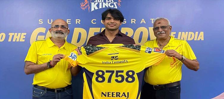 IHG చెన్నై సూపర్ కింగ్స్ ప్రాంచైజీ ఒలంపిక్స్ విన్నర్ నీరజ్  కు ఒక కోటిరూపాయలను బహుకరించింది. దాంతోపాటుగా అతనిపేరుమీద ఓ కొత్త జెర్సీ ని విడుదల చేసింది. ఆ జెర్సీ పై 5758  అనే నుంబర్ ను ముద్రించడం గమనార్హం ఎందుకంటె నీరజ్ చోప్రా ట్రాక్ అండ్ ఫీల్డ్  లో 87.58 మీటర్లు జావెలిన్ త్రో విసిరి స్వర్ణాన్ని సాధించాడు కాబట్టి అతడి జ్ఞాపకార్థం ఆ జెర్సీ పై నుంబర్ ను ప్రింట్ చేశారు. ఇదిలావుండగా నీరజ్.. మహీంద్రా కంపెనీ నుండి  ‘ఎక్స్‌యూవీ700’ అనే కారును గిఫ్ట్ గా అందుకున్నాడు. నీరజ్ స్వర్ణం గెలిచినా తరువాత ఆనంద్ మహీంద్రా నీరజ్ కు ప్రత్యేకంగా డిజైన్ చేసి   ‘ఎక్స్‌యూవీ700’ ను బహుమతిగా ఇస్తానని మాట ఇచ్చాడు . అందుకే  ‘ఎక్స్‌యూవీ700’ కారును నీరజ్ ఇంటికి పంపించాడు.