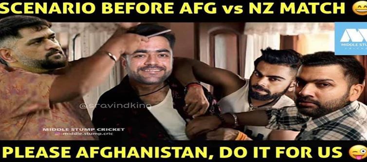 ఈ క్రమంలోనే భారత అభిమానులందరూ ఆఫ్ఘనిస్తాన్ గెలవాలని మా పూర్తిస్థాయి మద్దతు మీకే ఉంటుంది అంటూ ఇప్పటికే సోషల్ మీడియా వేదికగా పోస్టులు పెడుతున్నారు. ఇక టీమిండియా ఆటగాళ్లు సైతం ప్రస్తుతం ఆఫ్ఘనిస్తాన్ గెలవాలి అంటు కోరుకుంటూ ఉండటం గమనార్హం. ఈ క్రమంలోనే దీనిని ఉద్దేశిస్తూ టీమిండియా ఆటగాళ్లు ఇప్పుడు ఆఫ్ఘనిస్తాన్ ఆటగాళ్లకు ఎలా మద్దతు ఇస్తున్నారు ఎలా ప్రోత్సహిస్తున్నారు అనే విషయాన్ని తెలిపేలా ఒక ట్రోల్ సోషల్ మీడియాలో వైరల్  గా మారిపోయింది  ఇక ఈ ఫోటోలో ధోని రషీద్ ఖాన్ జుట్టు దువ్వుతూ ఉంటే విరాట్ కోహ్లీ రోహిత్ శర్మ ఏకంగా రషీద్ ఖాన్ షర్ట్ సరి చేస్తున్నారు. తప్పకుండా గెలవాలి అంటూ ప్రోత్సహిస్తున్నట్లు గా ఉంది. ఇక ఇది చూసిన అందరూ నవ్వుకుంటున్నారు.