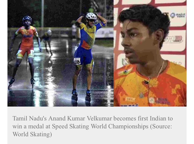 New delhi (Nov. 25): Cricket-focused india is now making a mark in other sports. anand Velkumar of india won the silver medal at World Speed Skating Games 2021.