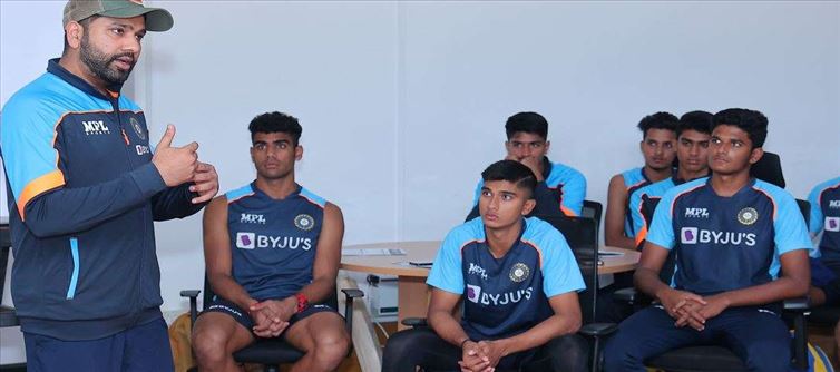 శుక్రవారం ఉదయం, రోహిత్ మరియు అతని సహచరుడు రవీంద్ర జడేజా NCAలో స్నాప్ చేయబడ్డారు, ఇప్పుడు bcci ODI కెప్టెన్ చిత్రాలను ట్విట్టర్‌లో పంచుకుంది, ఇందులో హిట్ మ్యాన్ భారతదేశం U-19 క్రికెట్ జట్టుతో సంభాషించడాన్ని చూడవచ్చు. వారి అధికారిక హ్యాండిల్ ద్వారా చిత్రాలను పంచుకుంటూ, bcci ట్వీట్ చెయ్యడం జరిగింది.