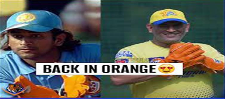 Currently, dhoni is wearing the orange gloves he wore at the beginning of his international career. It may even be a sign that he is retiring from cricket.