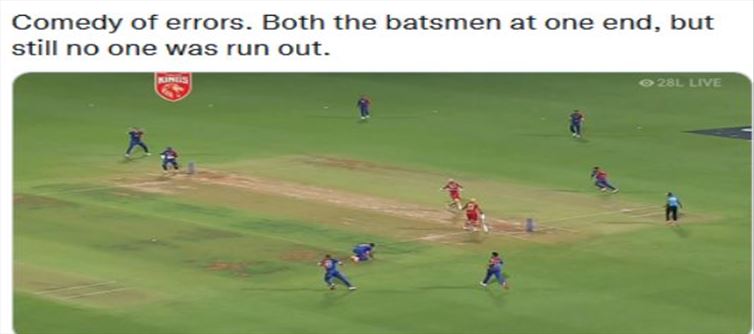 Thus comedy of errors happened with both batsmen standing at the same end and yet they were not out. Fans loved the liveliness of the team players and enjoyed this funny incident. At last delhi Capitals team won the match by 17 runs defeating the punjab Team. This made punjab Team's entry into the play-offs difficult.