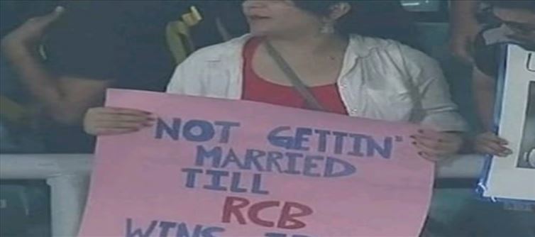 ఈ క్రమంలోనే కొంత మంది ప్రేక్షకులు ప్రదర్శించిన ప్లకార్డులు ఎంతో మంది దృష్టిని ఆకర్షిస్తూ సోషల్ మీడియాలో హాట్ టాపిక్ గా మారిపోతూ ఉంటాయి. అయితే గతంలో రాయల్ చాలెంజర్స్ బెంగళూరు జట్టు మ్యాచ్ ఆడుతున్న సమయంలో ఒక మహిళ అభిమాని ఒక ప్లకార్డు పట్టుకుని కనిపించింది. రాయల్ చాలెంజర్స్ బెంగళూరు జట్టు ఐపీఎల్ టైటిల్ విజయం సాధించేంత వరకు తాను పెళ్లి చేసుకోను అంటూ రాసి ఉంది ఇక ఇది చూసిన నెటిజన్లు వామ్మో ఈ యువతి మంగమ్మ శపతం బాగానే చేస్తుంది. ఆర్సిబి ఒకవేళ ఓడిపోతే పరిస్థితి ఏంటో అని అనుకున్నారు.