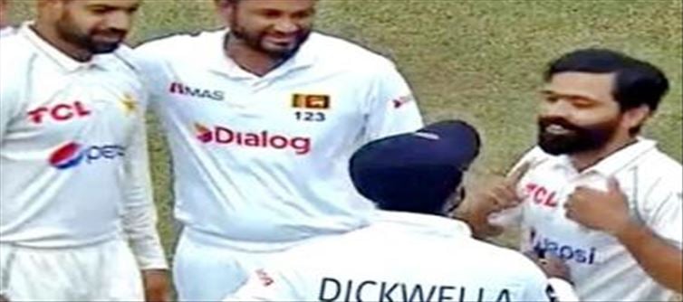 ఇలా ఎప్పుడైనా జరిగింది అంటే చాలు అందుకు సంబంధించిన వీడియో సోషల్ మీడియాలో తెగ హల్ చల్ చేస్తూ ఉంటుంది. ఇక ఇప్పుడు పాకిస్తాన్ శ్రీలంక మధ్య జరుగుతున్న టెస్ట్ మ్యాచ్లో భాగంగా ఇలాంటిదే జరిగింది అని చెప్పాలి. శ్రీలంక క్రికెటర్ నిరోషాన్ డిక్వెల్లా పాకిస్థాన్ క్రికెటర్ పవాద్ ఆలం మధ్య మాటల యుద్ధం జరిగింది. అయితే అందరి మధ్య జరిగినట్లుగా  సీరియస్గా కాదు.. సరదాగా ఇద్దరూ మాటల యుద్ధం చేసుకున్నారు అని చెప్పాలి. ఇందుకు సంబంధించిన వీడియో వైరల్ గా మారిపోయింది. ఇక ఈ వీడియోలో చూసుకుంటే నిరోషాన్ డిక్వెల్లా పవాద్ ను ఉద్దేశించి ఏదో అన్నాడు. పవాద్ కూడా కౌంటర్ ఇచ్చాడు.