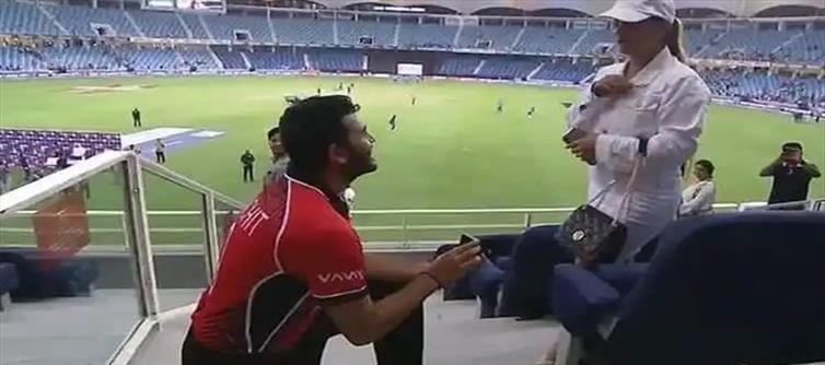 ఇండియా హాంగ్కాంగ్ మధ్య మ్యాచ్ జరిగింది. కాగా హాంకాంగ్ బ్యాట్స్మెన్ మెన్ కించిత్ షా స్టేడియంలోని తన గర్ల్ ఫ్రెండ్ ప్రపోజ్ చేసి ఆశ్చర్యపరిచాడు. ఇండియా తో మ్యాచ్ ముగిసిన తర్వాత వెంటనే స్టాండ్స్ లోకి వెళ్లిన కించిత్ అక్కడ కూర్చొని మ్యాచ్ వీక్షిస్తున్న ప్రేయసికి తన జేబులో ఉన్న రింగ్ ఇచ్చి సర్ప్రైజ్ చేశాడు. మోకాళ్ళ మీద కూర్చుని తన ప్రేమను వ్యక్త పరిచాడు. దీంతో ఆశ్చర్యానికి లోనైన సదరు యువతి ఆ తర్వాత అతని ప్రేమను అంగీకరించింది. ఇందుకు సంబంధించిన వీడియో ప్రస్తుతం ట్విట్టర్ వేదికగా వైరల్ గా మారిపోయింది అని చెప్పాలి.
