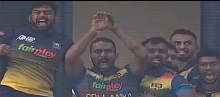 ఈ క్రమంలోనే ఇక తమ జట్టు విజయం సాధించింది అంటే చాలు ఆటగాళ్లందరూ కూడా చిత్రవిచిత్రమైన హావభావాలతో ఇక విజయాన్ని ఎంజాయ్ చేయడం లాంటివి చేస్తూ ఉంటారు. అయితే ఇటీవలే ఆసియా కప్లో భాగంగా కూడా ఇలాంటిదే జరిగింది. ఇటీవలే ఆసియా కప్లో భాగంగా భారత్ బంగ్లాదేశ్ జట్ల మధ్య మ్యాచ్ జరిగింది అన్న విషయం తెలిసిందే. చివరి వరకు కూడా ఎంతో ఉత్కంఠ భరితంగా సాగింది అని చెప్పడంలో అతిశయోక్తి లేదు. ఉత్కంఠ పోరులో ఓడిపోతుంది అనుకున్న శ్రీలంక అనూహ్యంగా విజయం సాధించింది.. బంగ్లాదేశ్పై రెండు వికెట్ల తేడాతో విజయాన్ని  అందుకుని  సూపర్ 4 లోకి అడుగు పెట్టింది అని చెప్పాలి.