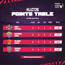Legends League cricket Points Table..