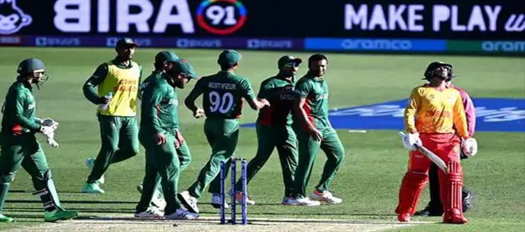 ఎంతో ఉత్కంఠ భరితంగా జరిగిన మ్యాచ్లో జింబాబ్వే పై బంగ్లాదేశ్ జట్టు మూడు పరుగుల తేడాతో విజయం సాధించింది అన్న విషయం తెలిసిందే. అయితే ఈ మ్యాచ్ లో జింబాబ్వే ఇన్నింగ్స్ ఆఖరి ఓవర్ లో హైడ్రామా చోటు చేసుకుంది అని చెప్పాలి. చివరి ఓవర్లో జింబాంబే విజయానికి 16 పరుగులు కావాల్సి ఉండగా.. తొలి బంతికే లెగ్ బైస్ రూపంలో ఒక పరుగు వచ్చింది. కానీ రెండో బంతికే వికెట్ పడింది. దీంతో సమీకరణం నాలుగు బంతుల్లో 15 పరుగులుగా మారింది. ఇక మూడో బంతికి లెగ్ బైస్ రూపంలో నాలుగు పరుగులు, నాలుగో బంతికి నగరావ భారీ సిక్సర్ బాదాడు. దీంతో ఒక్కసారిగా మ్యాచ్ జింబాబ్వే వైపు మళ్ళింది.