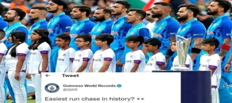 ఇదిలా ఉంటే.. అటు టి20 వరల్డ్ కప్ లో భాగంగా సెమీఫైనల్ లో ఓడిన భారత జట్టును గిన్నిస్ వరల్డ్ రికార్డు సంస్థ దారుణంగా అవమానించే విధంగా ఒక పోస్ట్ పెట్టడం ప్రస్తుతం సోషల్ మీడియాలో వైరల్గా మారిపోయింది. అంతేకాదు భారత అభిమానులను ఆగ్రహానికి గురిచేస్తుంది. సెమీఫైనల్ లో ఇంగ్లాండ్ చేతిలో భారత ఓటమిని దారుణమైన ఓటమిగా అభివర్ణిస్తూ క్రికెట్ చరిత్రలో అత్యంత సునాయాసమైన లక్ష్య చేదన అంటూ భారతీయుల మనోభావాలను దెబ్బ తీసే విధంగా పోస్ట్ పెట్టింది గిన్నిస్ వరల్డ్ రికార్డ్ సంస్థ. దీంతో గిన్నిస్ సంస్థపై ఆగ్రహం వ్యక్తం చేస్తున్నారు టీమిండియా ఫ్యాన్స్.