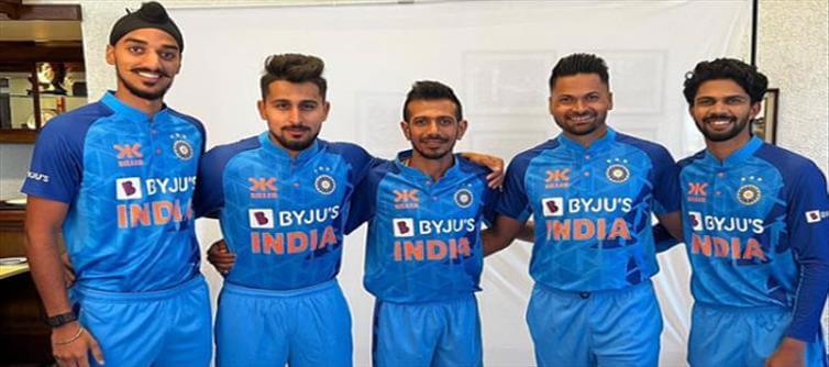 ఇకపోతే ఇటీవలే టీమ్ ఇండియాలో యువ ఆటగాళ్లు ఎలాంటి ప్రదర్శన చేస్తారో అన్న విషయం గురించి అందరూ చర్చించుకుంటున్నారు. ముఖ్యంగా టీమ్ ఇండియా తరఫున తన డెబ్యు మ్యాచ్ ఆడిన శివమ్ మావి ఏకంగా నాలుగు ఓవర్లలో 20 పైగా పరుగులు ఇచ్చి నాలుగు వికెట్లు పడగొట్టి అదిరిపోయే ప్రదర్శన చేశాడు అని చెప్పాలి. ఇకపోతే ఇటీవల టీమిండియా విజయం గురించి మాత్రమే కాదు టీమ్ ఇండియా జెర్సీ గురించి కూడా అందరూ చర్చించుకుంటున్నారు. ఇటీవల టీమిండియా ప్లేయర్ చాహల్ ఇంస్టాగ్రామ్ వేదికగా తన సహచర ఆటగాళ్లతో దిగిన ఫోటోని పోస్ట్ చేశాడు.