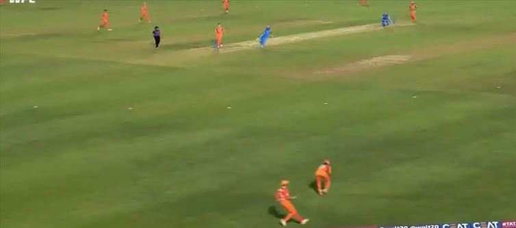 అయితే ఇక ఈ మ్యాచ్ మొత్తంలో హర్లిన్ డియోల్ త్రో మాత్రం హైలెట్ గా మారిపోయింది అని చెప్పాలి. ముంబై ఇండియన్స్ ఇన్నింగ్స్ 18 ఓవర్లో ఉమైరా, కెప్టెన్ హర్మన్ ప్రీత్ తో కలిసి బ్యాటింగ్ చేస్తుంది. అయితే బంతి అన్నాబెల్ సదర్ల్యాండ్ చేతిలో ఉంది. హార్మన్ ప్రీత్ కౌర్ మిడ్ ఆన్ దిశగా బౌండరీ వైపు షాట్ ఆడింది. అయితే అక్కడే ఫీల్డింగ్ చేస్తున్న హార్లీన్ డియోల్ ఇక బంతిని అందుకుంది. అయితే ఏకంగా బౌండరీ దగ్గర నుంచి నేరుగా వికెట్లను చూసి గురి కొట్టింది. త్రో ఎలాగూ తగలదు అని భావించిన బ్యాట్స్మెన్ నెమ్మదిగానే పరిగెత్తుకుంటూ వచ్చింది. కానీ బంతి నేరుగా వచ్చి వికెట్లను తాకింది. దీంతో అందరూ ఒక్కసారిగా షాక్ అయ్యారు.