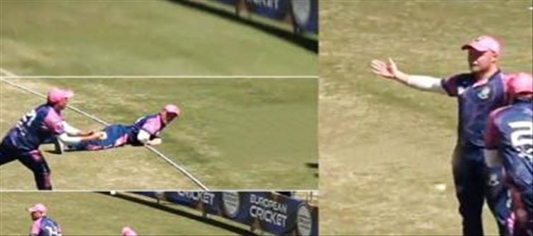 యూరోపియన్ క్రికెట్ టి10 లీగ్ లో భాగంగా జరిగిన ఒక క్వాలిఫైయర్ మ్యాచ్లో ఇలా అద్భుతమైన క్యాచ్ పరీక్షకులందరికీ కూడా ఆశ్చర్యపరిచింది అని చెప్పాలి. ఈ మ్యాచ్ లో సివైఎంఎస్ పై 3 వికెట్ల తేడాతో డ్రిక్స్ హార్స్న్ విజయం సాధించింది. తద్వారా యూరోపియన్ క్రికెట్ టి10 లీగ్ లో ఫైనల్ లో డ్రిక్స్ హార్న్స్ అడుగుపెట్టింది అని చెప్పాలి. అయితే ఈ మ్యాచ్ లో సి వై ఎం ఎస్ ఆటగాళ్లు జాసన్ వాన్ డేర్ మెర్వ్, జాకబ్ ముల్దర్ అద్భుతమైన విన్యాసంతో అందరిని ఆశ్చర్యపరిచారు. బౌండరీ లైన్ వద్ద ఫీల్డింగ్ చేస్తు సంచలన క్యాచ్ తో మెరిసారు అని చెప్పాలి. డ్రిక్స్ హార్న్స్ ఇన్నింగ్స్ నాలుగు ఓవర్ సమయంలో ఆడమ్ కెనాటి బౌలింగ్లో నబి డీప్ మీట్ వికెట్ దిశగా భారీ షాట్ కు ప్రయత్నించాడు.