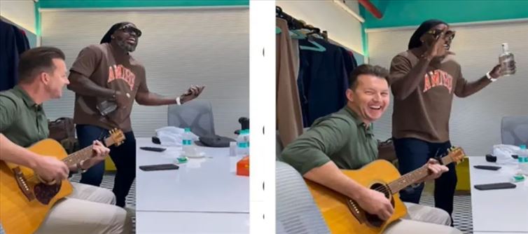 కానీ ఈ దిగ్గజా క్రికెటర్ లో ఒక మంచి సింగర్ కూడా ఉన్నారు అన్నది మాత్రం వైరల్ గా మారిపోయిన వీడియో ద్వారా అందరికీ అర్థమవుతుంది. ఆస్ట్రేలియా మాజీ ఫాస్ట్ బౌలర్ అయిన బ్రెట్ లీ తో కలిసి సాంగ్ పాడుతూ హల్చల్ చేశాడు క్రిస్ గేల్. ఈ వీడియో ప్రస్తుతం సోషల్ మీడియాలో వైరల్ గా మారిపోయింది. ఒకవైపు ఆస్ట్రేలియా మాజీ ప్లేయర్ బ్రెట్ లి అద్భుతంగా గిటార్ వాయిస్తుంటే క్రిస్ గేల్ అద్భుతమైన ర్యాప్ పాడాడు. ఇక వీరిద్దరూ ప్రస్తుతం ఐపీఎల్ లో భాగంగా ఇండియా లోనే ఉన్నారు అని చెప్పాలి.