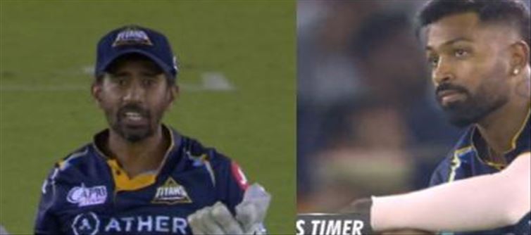 అయితే తనకు బంతి బ్యాట్ కి తగిలినట్లుగా ఎక్కడ సౌండ్ వినిపించలేదు అని కెప్టెన్ హార్దిక్ పాండ్యా బౌలర్ మోహిత్ శర్మ చెప్పినప్పటికీ సాహా మాత్రం లేదు నాకు సౌండ్ వచ్చింది బంతి బ్యాట్ కి తాకింది అని కాన్ఫిడెంట్గా చెప్పాడు. అయితే అప్పటికే డిఆర్ఎస్ సమయం ముగిసి పోవడానికి ఒక్క సెకండ్ మాత్రమే మిగిలింది. అలా చివరి సెకండ్ లో సాహాను గుడ్డిగా నమ్మిన హార్థిక్ పాండ్యా రివ్యూ కు వెళ్ళాడు. అయితే రిప్లై లో మాత్రం బంతి బ్యాట్ ఎడ్జ్ ను తాకినట్టుగా అల్ట్రా ఎడ్జ్ లో స్ట్రైక్ రావడంతో ఇక అంపైర్ బ్యాట్స్మెన్ జితేష్ శర్మను అవుట్ అయినట్లు ప్రకటించాడు. దీంతో నవ్వుతూ సాహ దగ్గరికి వెళ్లిన హార్దిక్ పాండ్యా హగ్ చేసుకుని అభినందించాడు.