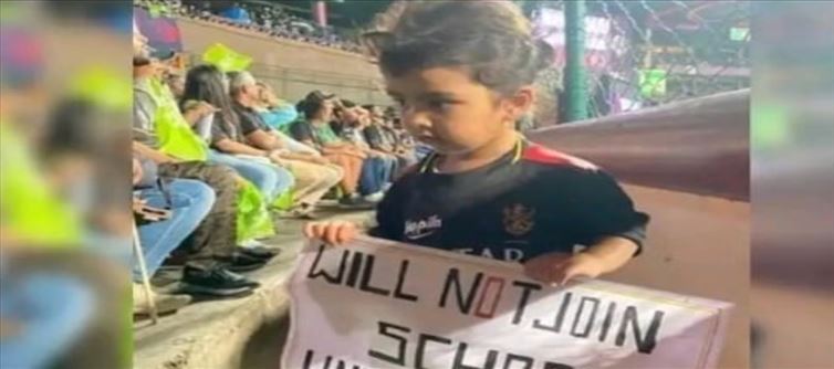 ఈ క్రమంలోనే గతంలో ఓ మహిళ అభిమాని పట్టుకున్న ఫ్లకార్డు హాట్ టాపిక్ గా మారిపోయింది. రాయల్ చాలెంజర్స్ బెంగళూరు జట్టు కప్పు కొట్టేంతవరకు తాను పెళ్లి చేసుకోను అంటూ రాసి ఉన్న ఫ్లకార్డు పట్టుకుంది. ఇక ఇప్పుడు ఇలాంటి ఒక ఫోటో సోషల్ మీడియాలో తెగ చక్కర్లు కొడుతుంది. ఏకంగా స్కూల్ ఎగ్గొట్టేందుకు ఇక్కడ ఒక బుడ్డోడు పెద్ద ప్లానే వేశాడు. ఈ ఐపిఎల్ సీజన్లో రాయల్ చాలెంజర్స్ బెంగళూరు సపోర్ట్ చేస్తూ.. ఆ జట్టు జెర్సీ వేసుకున్నాడు ఇక్కడొక బుడ్డోడు. ఆర్సిబి టీం ఐపీఎల్ కప్ గెలిచే వరకు తాను స్కూలుకు వెళ్ళను అంటూ రాసి ఉన్న ఒక ఫ్లకార్డు పట్టుకున్నాడు. ఇక ఈ ప్లకార్డు చూసి స్కూల్ ఎగొట్టేందుకు బుడ్డోడి ప్లాన్ భలే ఉంది అంటూ నేటిజన్స్ నవ్వుకుంటున్నారు.