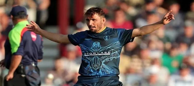 జమాన్ ఖాన్ విటాలిటీ టి20 బ్లాస్ట్లో సంచలన బౌలింగ్తో అదరగొట్టాడు. ఇతను బౌలింగ్ మలింగ బౌలింగ్ ను పోలి ఉంది. వరుస యార్కర్లతో బ్యాట్స్ మెన్ ను ఇబ్బంది పెట్టాడు. వరుస వికెట్లు పడగొడుతున్నాడు. తాజాగా జమాన్ ఖాన్ ప్రత్యర్థి బ్యాటర్ను క్లీన్బౌల్డ్ చేసిన వీడియో ఒకటి నెట్టింట హల్ చల్ చేస్తుంది. సోమవారం డెర్బీషైర్, వోర్సెష్టర్షైర్ మధ్య మ్యాచ్ జరిగింది. తొలుత బ్యాటింగ్ చేసిన వోర్సెష్టర్షైర్ 3.4 ఓవర్లలోనే 45 పరుగులు చేసింది. ఆ తరువాత ఒక వికెట్ పడింది. ఆ తరువాత న్యూజిలాండ్ స్టార్ మిచెల్ సాంట్నర్, హెయిన్స్కు జత కలిశాడు. వీరిద్దరూ కలిసి 72 భాగస్వామ్యం నెలకొల్పారు. ఈ దశలో జమాన్ ఖాన్ బౌలింగ్ కు వచ్చాడు. 13వ ఓవర్ వేసిన జమాన్ ఖాన్ అద్భుతమైన యార్కర్ తో సాంట్నర్ ను పెవిలియన్ చేర్చాడు. జమాన్ ఖాన్ వేసిన బాల్ సాంట్నర్ కాళ్ల సందుల్లో నుంచి వెళ్లి వికెట్లను తాకింది. యార్కర్ తో పాటు పేస్ కూడా యాడ్ చేయడంతో రెండు స్టంప్లు గాలిలో ఎగిరిపడ్డాయి. నాలుగు ఓవర్ లు వేసి 29 పరుగులిచ్చి రెండు వికెట్లు తీశాడు. అయితే ఈ మ్యాచ్ లో మాత్రం గెలవలేకపోయింది. కానీ ఇప్పుడు జమాన్ ఖాన్ వేసిన యార్కర్ మాత్రం సోషల్ మీడియాలో వైరల్ అవుతుంది.