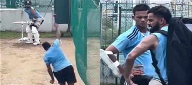 తన సహచర ఆటగాళ్లతో కలిసి నెట్ ప్రాక్టీస్ లో బిజీబిజీగా గడుపుతున్నాడు. రవిచంద్రన్ అశ్విన్, రవీంద్ర జడేజా, జయదేవ్ ఉనాద్గత్ లాంటి అనుభవజ్ఞులైన బౌలర్లు బంతులు వేస్తుంటే.. విరాట్ కోహ్లీ బ్యాటింగ్ ప్రాక్టీస్ చేస్తూ ఉన్నాడు. అంతేకాదు ఈ ప్రాక్టీస్ సెషన్లో భాగంగా విరాట్ కోహ్లీ అటు బౌలింగ్ కోచ్ గా కూడా మారిపోయాడు అని చెప్పాలి. ఏకంగా యువ సంచలనం యశస్వి జైస్వాల్ కు బౌలింగ్ చేస్తూ కనిపించాడు విరాట్ కోహ్లీ. ఇందుకు సంబంధించిన వీడియో కాస్త ట్విట్టర్ వేదికగా వైరల్ గా మారిపోయింది.