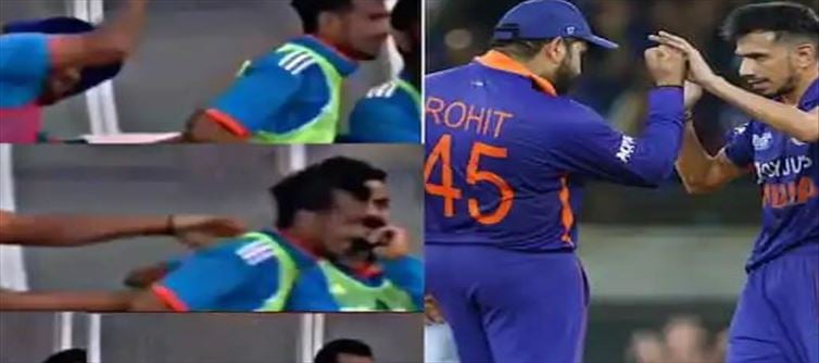 అయితే మ్యాచ్ జరుగుతున్న సమయంలో కోహ్లీ రోహిత్ చాహల్ డగ్ అవుట్ లో కూర్చున్నారు. కోహ్లీతో పాటు జయదేవ్ కూడా ఉన్నాడు. అయితే ఈ సమయంలోనే కోహ్లీ, చాహల్ మధ్య ఏదో సీరియస్ డిస్కషన్ నడుస్తుంది. ఇలాంటి సమయంలోనే రోహిత్ శర్మ ఏకంగా చాహాల్ ను మొదట తల మీద కొట్టాడు. ఆ తర్వాత వీపు విమానం మోత మోగించాడు. అయితే చాహల్ వద్దు అని చెబుతున్న రోహిత్ వినలేదు. ఆ తర్వాత నొప్పితో చాహల్ విలవిలలాడాడు. అయితే ఇది చూసి కోహ్లీ నవ్వుకోవడం మొదలు పెట్టాడు అని చెప్పాలి.