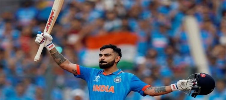 तीसरे नंबर पर बल्लेबाजी करने आए कोहली ने 106 गेंदों पर अपना तिहरा आंकड़ा हासिल किया। मौजूदा टूर्नामेंट में बांग्लादेश और दक्षिण अफ्रीका के खिलाफ अपनी पारी के बाद यह भारत के पूर्व कप्तान का तीसरा शतक था। इस महीने की शुरुआत में ईडन गार्डन्स में 35 वर्षीय खिलाड़ी ने तेंदुलकर की बराबरी की थी और संयोग से उसी स्थान पर तेंदुलकर ने अपना आखिरी अंतरराष्ट्रीय मैच खेला था। उल्लेखनीय रूप से, यह वनडे विश्व कप नॉकआउट मैच में कोहली द्वारा 50 या उससे अधिक स्कोर बनाने का पहला उदाहरण था।