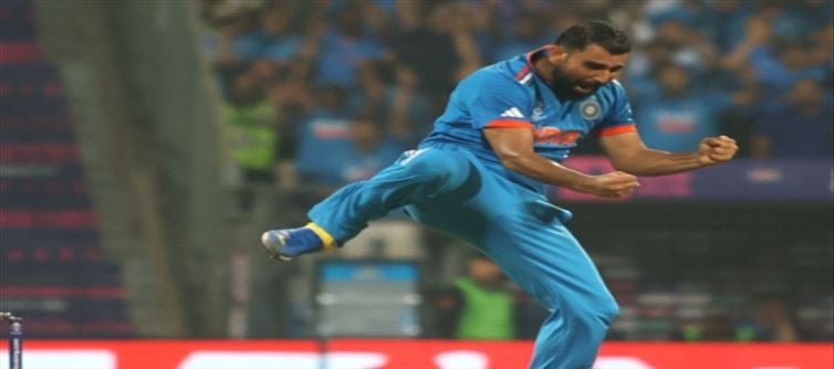 Star player Mohammad shami has set the record of being the player to take 50 wickets in the shortest innings in world cup cricket history. The indian team is playing against the new zealand team in the semi-final match of the world cup series. Batting first in this match, the indian team scored 397 runs for the loss of 4 wickets in 50 overs. virat kohli scored 117 runs and shreyas iyer scored 105 runs. tim southee took 3 wickets for the new zealand team.