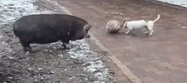 ఇక ఇప్పుడు ఇలాంటి రెండు జంతువులు ఇలా ఏకంగా ఫుట్బాల్ బంతితో ఆడుకుంటూన్న వీడియో ఒకటి సోషల్ మీడియాలో వైరల్ గా మారిపోయింది. ఏకంగా నల్ల పంది ఒక పొట్టి కుక్క కలిసి ఫుట్బాల్ ఆడాయి. పంది మూతితో బంతిని నెట్టగా అది కుక్కవైపు వెళ్ళింది ఇక ఆ తర్వాత కుక్క దానిని తిరిగి దాని మూతితో పంది వైపు నెడుతుంది. పంది మళ్లీ ఆ బంతిని హిట్ చేయగా కుక్క తిరిగి కొట్టేందుకు బంతి వెంటపడటం ఇక వైరల్ గా మారిపోయిన వీడియోలో చూడవచ్చు. సాధారణంగా అయితే పంది కుక్క ఎదురుపడ్డాయి అంటే చాలు ఒకదానిని ఒకటి తరమడం లాంటివి చేస్తూ ఉంటాయి. కానీ ఇలా ఈ రెండు జంతువులు హ్యాపీగా స్నేహితుల్లాగా ఫుట్బాల్ ఆడటం చూసి నేటిజన్స్ షాక్ అవుతున్నారు.