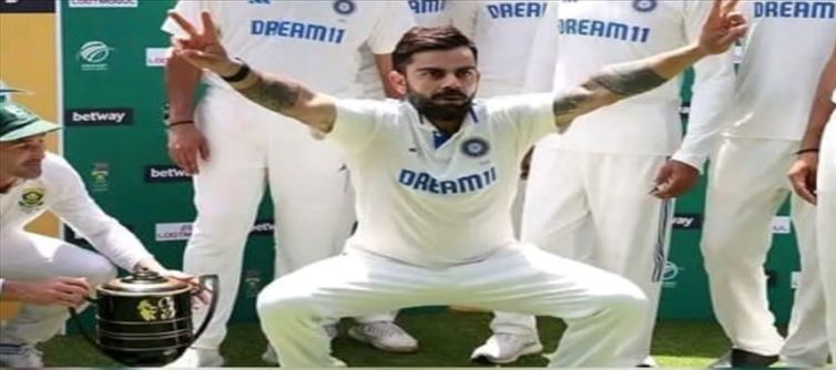 మ్యాచ్ జరుగుతున్న సమయంలో కోహ్లీలో ఎలా అయితే బాధ్యత గల క్రికెటర్ కనిపిస్తాడో.. మ్యాచ్ పూర్తయిన తర్వాత విరాట్ కోహ్లీ లోని చిన్నపిల్లాడు బయటికి వస్తూ ఉంటాడు. ఈ క్రమంలోనే కోహ్లీ చేసే చిలిపి పనులు అభిమానులందరికీ హృదయాలను దోచేస్తూ ఉంటాయి అని చెప్పాలి. అయితే ఇక ఇటీవల విరాట్ కోహ్లీ మరోసారి తనలోని ఫన్నీ యాంగిల్ ను చూపించాడు. సౌత్ ఆఫ్రికా తో రెండో టెస్టులో టీమిడియా గెలవడంతో 1-1 తో సిరిస్ సమం అయ్యింది. ఈ క్రమంలోనే సౌత్ ఆఫ్రికా, భారత జట్లు ట్రోఫీతో ఫోటోలు దిగాయి. ఆ సమయంలో విరాట్ కోహ్లీ చిన్న పిల్లాడి లాగా ఫోటోకి ఫోజులు ఇవ్వగా.. ఇది కాస్త వైరల్ గా మారిపోయింది. ఇది చూసిన అభిమానులు క్రికెట్లోనే కాదు.. ఇలా ఫన్నీగా ఉండడంలోనూ నిన్ను మించినోడు లేడు అంటూ కామెంట్లు చేస్తూ ఉండడం గమానార్హం.