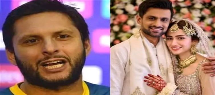 పాకిస్తాన్ కు చెందిన నటి అయిన సనా జావేద్ ను షోయబ్ మాలిక్ పెళ్లి చేసుకున్నాడు. ఈ క్రమం లోనే అతని మూడో పెళ్లి కాస్త సోషల్ మీడియాలో హాయ్ టాపిక్ గా మారి పోయింది అని చెప్పాలి. అయితే పాకిస్తాన్ క్రికెటర్ షోయబ్ మాలిక్ ముచ్చటగా మూడో సారి పెళ్లి చేసుకున్న విషయంపై ఎంతో మంది మాజీ క్రికెటర్లు కూడా స్పందిస్తున్నారు. ఇక ఇదే విషయంపై పాకిస్తాన్ మాజీ క్రికెటర్ షాహిద్ ఆఫ్రిది స్పందిస్తూ ఆసక్తికర వ్యాఖ్యలు చేశాడు. షోయబ్ మాలిక్, సనా దంపతులకు శుభాకాంక్షలు. షోయబ్ ఇక ఈ భార్యతో జీవితాంతం సంతోషంగా ఉండాలని కోరుకుంటున్న అంటూ షాహిద్ ఆఫ్రిది కామెంట్ చేశాడు.