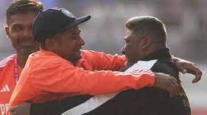 Sarfaraz Khan's father Nelshad Khan has said that the Message sent by indian star suryakumar yadav is the reason for the rajkot Ground. sarfaraz khan has been introduced in the 3rd Test against England. sarfaraz khan made the world look back in the first innings for the indian team. sarfaraz khan was dismissed for 62 runs due to Jadeja's mistake. Captain Rohit Sharma, unable to accept the run-out, took off his cap and expressed his anger. Moreover, on Jadeja's Instagram, he posted that his mistake was the reason for the sarfaraz khan run out. He posted that he played the best innings.