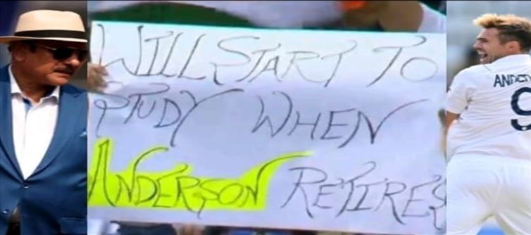 ఇలా ఒక్కొక్కరు ఒక్కో విధంగా తమకు నచ్చినట్లుగా ఇక ఫ్లకార్డులఫై ఎన్నో కొటేషన్స్ రాసి వాటిని ప్రదర్శించడం చేస్తూ ఉంటారు. అయితే ఇలాంటివి అటు కెమెరా కంట పడ్డాయి అంటే చాలు క్లిక్ మనిపించి సోషల్ మీడియాలో పెట్టేయడం చేస్తూ ఉంటారు. దీంతో ఇలాంటివి వైరల్ గా మారిపోతూ ఉంటాయి. అయితే ఇటీవలే ఇండియా, ఇంగ్లాండ్ జట్ల మధ్య ముగిసిన రాంచి లోని నాలుగో టెస్ట్ సమయంలో కూడా ఒక అభిమాని ప్రదర్శించిన ప్లకార్డు వైరల్ గా మారిపోయింది. ఓ కుర్రాడు స్పెషల్ పోస్టర్ను ప్రదర్శించాడు.. ప్రస్తుతం ఇంగ్లాండ్ జట్టులో సీనియర్ బౌలర్గా కొనసాగుతున్న జేమ్స్ అండర్సన్ రిటైర్మెంట్ ప్రకటించినప్పటి నుంచి.. నేను చదవడం ప్రారంభిస్తాను అంటూ రాసి ఉన్న బోర్డుని ప్రదర్శించాడు.