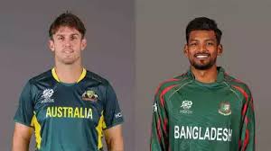 Australia won the toss and elected to bowl in the Super 8 match against Bangladesh. Batting first, bangladesh scored 140 runs for the loss of 8 wickets in 20 overs. Captain Najmul Hussain Shanto scored 41 runs and Tawheed Hiruthoi scored 40 runs. Australia's Pat Cummins scored a hat-trick. He conceded 29 runs in 4 overs and took 3 wickets. David Warner and Travis Head gave a great start to the chasing australia team. Both played an action game. After scoring 65 runs in 6.5 overs, Travis Head was bowled out for 31 runs. Next captain Mitchell Marsh was out for one run. David Warner then scored a half-century. Maxwell also played an action game. After australia scored 100 runs in 11.2 overs, the match was interrupted by rain. The match was abandoned due to prolonged rain. According to the DLS system, the Australian team was declared victorious by 28 runs. australia has overtaken the indian team in the first division of the Super 8 round. Both the teams have played one match and got one win. australia is ahead of india in terms of net run rate.