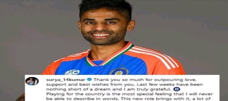 కాగా తనకు టి20 కెప్టెన్సీ బాధ్యతలు దక్కడంపై సూర్యకుమార్ యాదవ్ మొదటిసారి స్పందించాడు. నాపై అభిమానులు చూపిస్తున్న అమితమైన ప్రేమకు ధన్యవాదాలు. దేశం కోసం ఆడటం అనేది ఒక ప్రత్యేకమైన ఫీలింగ్. దాన్ని మాటల్లో వర్ణించలేను. కెప్టెన్సీ రావడం నాలో కొత్త ఉత్సాహాన్ని ఇవ్వడంతో పాటు బాధ్యతను కూడా పెంచింది. మీ సపోర్ట్ ఇలాగే ఉండాలని కోరుకుంటున్న. గాడ్ ఇస్ గ్రేట్ అంటూ సూర్య కుమార్ యాదవ్ సోషల్ మీడియాలో టీమిండియా కెప్టెన్సీ రావడంపై ఒక పోస్ట్ పెట్టాడు.