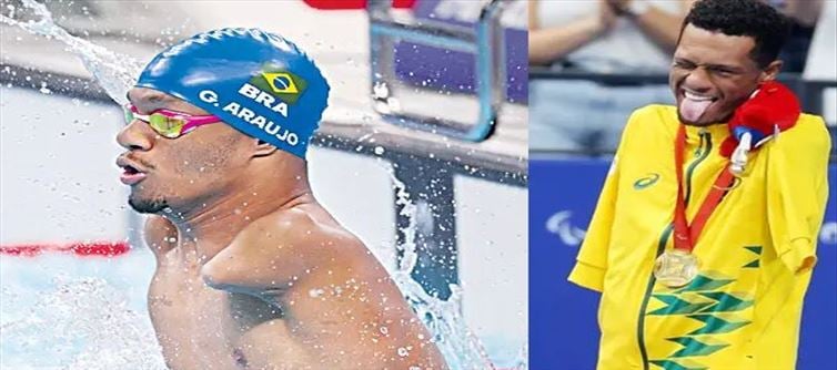 అదేంటి చేతులు లేకుండా స్విమ్మింగ్ ఎలా చేస్తాడు అని ఆశ్చర్యపోతున్నారు కదా. ఏకంగా డాల్ఫిన్ తరహాలో అతను స్విమ్మింగ్ పోటీలలో ఈది ఏకంగా బంగారు పథకాన్ని సాధించాడు. బ్రెజిల్ కు చెందిన ఈ స్విమ్మిర్ కొలనులో దూసుకుపోతున్న తీరు చూస్తే వైకల్యం కూడా అతని ముందు తలవంచి అభివాదం చేసింది అనే భావన ప్రతి ఒక్కరికి కూడా కలుగుతూ ఉంటుంది. పుట్టుకతోనే పోకో మెలియా అనే వ్యాధి బారిన పడటంతో.. గాబ్రియల్ రెండు చేతులు పూర్తిగా కోల్పోయాడు. కాళ్లు కూడా అచేతనంగా మారిపోయాయి. ఇలాంటి స్థితిలో అతను స్విమ్మింగ్ పై ఆసక్తి చూపించి కొలనులోకి దిగాడు. శరీరాన్ని మాత్రమే కదిలిస్తూ డాల్ఫిన్ తరహాలో ఈత నేర్చుకొని ఇక ఇదే టెక్నిక్ తో పారాలింపిక్స్ లో స్విమ్మర్గా బరిలోకి దిగి చివరికి ఈ 22 ఏళ్ల అథ్లెట్ బ్రెజిల్ కి బంగారు పథకాన్ని అందించాడు. 100 మీటర్ల బ్యాక్ స్ట్రోక్ లో దూసుకుపోయిన అతను ఒక నిమిషం 53.67 సెకండ్ల లోనే దీని ముగించి గోల్డ్ గెలుచుకున్నాడు. గతంలో టోక్యో ఒలంపిక్స్ లో కూడా రెండు స్వర్ణాలు ఒక రజతం గెలిచి అదరగొట్టాడు ఇతగాడు.
