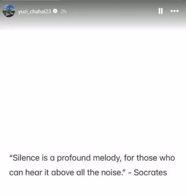 ఇక అసలు విషయంలోకి వెళితే... తాజాగా చాహల్ “అన్ని రకాల శబ్దాలు వినగలిగే వారికి, నిశ్శబ్దం ఒక లోతైన శ్రావ్య సంగీతంలా తోస్తుంది!” అంటూ ఒక నిగూఢమైన కోట్‌ను షేర్ చేసాడు. దాంతో ఇది అతని అభిమానుల మధ్య చర్చలకు దారితీసింది. ప్రేమ కారణంగా 2020లో వివాహంతో ఒక్కటైన ఈ జంట, సోషల్ మీడియా వేదికలపై అత్యంత ప్రజాదరణ పొందింది. కానీ, ప్రస్తుతం ఇద్దరూ తమ సంబంధంలో ఒడిదుడుకులను ఎదుర్కొంటున్నట్లు కనిపించడంతో సర్వత్రా చర్చనీయాంశం అవుతోంది. ఆగస్ట్ 8, 2020న నిశ్చితార్థం చేసుకున్న చాహల్, డిసెంబర్ 22న గుర్గావ్‌లో ధనశ్రీతో వివాహం జరుపుకున్నారు. వారి ప్రేమ కథ అభిమానులకు ఆదర్శంగా నిలిచినప్పటికీ, ప్రస్తుతం వారి సంబంధం గూర్చిన పుకార్లు ఒకింత కలవర పెడుతున్నాయి.