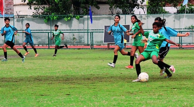 Football: Tie breaker...Varanasi defeated agra division's women's team by 4-2, won the trophy; great performance.