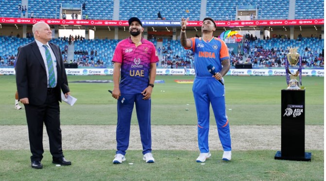 Captain suryakumar yadav won the toss and opted to bowl first in Dubai.