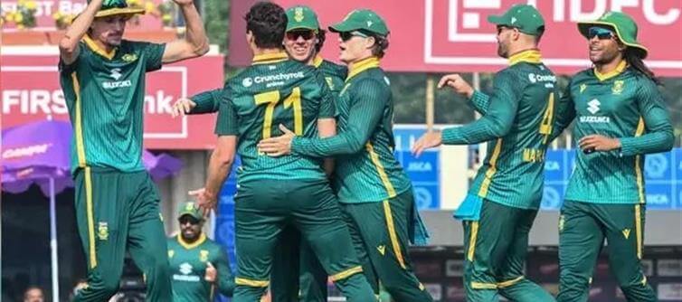 రోహిత్ శర్మ (57), కేఎల్ రాహుల్ (60) కూడా అర్ద సెంచరీలు బాదడంతో 349 పరుగులు భారీ స్కోరు చేసింది. భారీ టార్గెట్తో బ్యాటింగ్కు ఆదిలో తడబడిన సౌతాఫ్రికా కేవలం 11 పరుగులకే మూడు కీలక వికెట్లు కోల్పోయి కష్టాల్లోకి వెళ్లిపోయింది. అయితే సౌతాఫ్రికా మిడిల్ ఆర్డర్ బ్యాటర్లు మాథ్యూ బ్రీట్జ్కే (72) , జన్సెన్ (70) , కార్బిన్ బాష్ (67) ఆదుకోవడం తో 49.2 ఓవర్లలో ప్రొటీస్ జట్టు 332 పరుగులకు ఆలౌటైంది. మొత్తంగా భారత్ పర్యటనలో దక్షిణాఫ్రికా జట్టు పలు రికార్డులను నమోదు చేస్తూ దూసుకు పోతోంది.