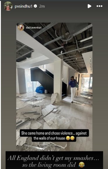Sindhu’s Humorous Response: sindhu responded jokingly, saying, "All england didn't get to experience my smashes, so I turned the living room into my badminton court," sharing the moment with laughing emojis on social media.