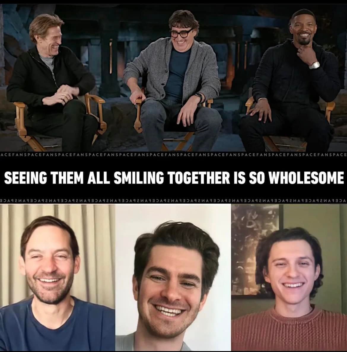 Each performer expressed their sense of friendship with statements like "I pursue Tobey to the corners of the Earth." Garfield's "I'm a lemming for Tobey" Holland reflected on the encounter, calling it "one of the most special experiences of my career." Maguire expressed his admiration for the Spider-Man team, saying, "I believe it's a credit to these guys that it went the way it did, which was a fraternity, which is just lovely."