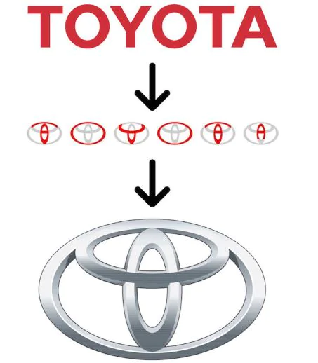 ఆటోమొబైల్ దిగ్గజ కంపెనీలలో టయోటో లోగో చూస్తే ఒక వృత్తంలో మరో రెండు వృత్తాలు కలిగి ఉండి, అందులో టి అనే అక్షరం కలిగి ఉంటాయి. అయితే ఇందులో(toyoto) కంపెనీ పేర్ల అన్ని అక్షరాలు ఉంటాయి.