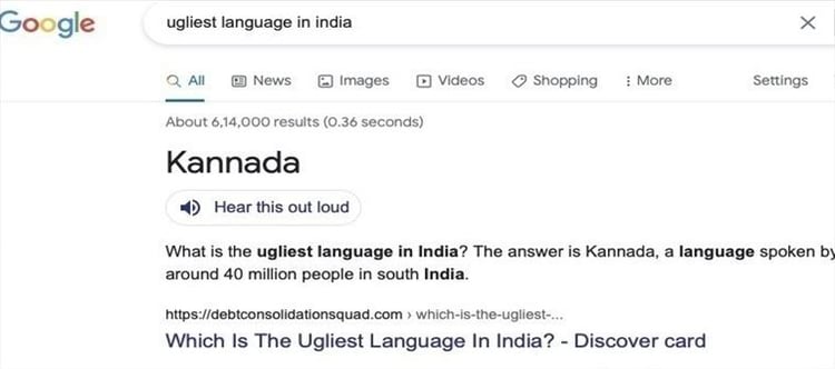 "भारत में सबसे बदसूरत भाषा" के लिए Google खोज परिणाम के स्क्रीनशॉट सोशल मीडिया पर व्यापक रूप से साझा किए गए हैं।