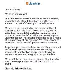 Experts have described this incident as a big incident. Experts have said that Cleartrip has been the victim of a big data breach. There are reports about the leak that it includes the internal files of the company along with the entry information of the customers.