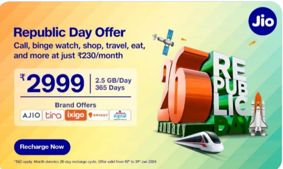 India is going to celebrate its 75th Republic Day on january 26, 2024. On this occasion, companies from all over the world doing business in india are offering huge discounts and many special offers on their services and products. After the ongoing Republic Day sale on amazon and Flipkart, jio has also given a great Republic Day offer on one of its prepaid plans.