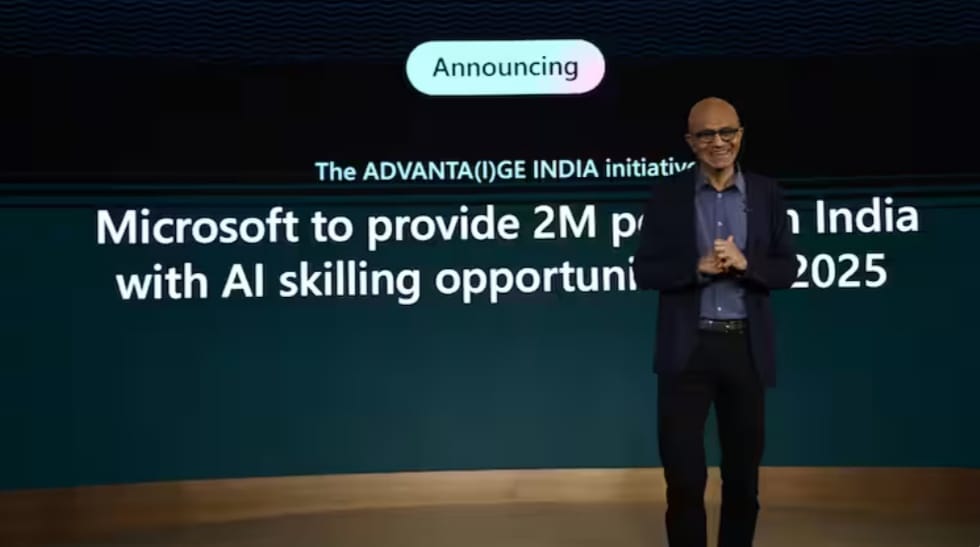 Microsoft To train 2 Million indians In AI Skills By 2025, satya Nadella Announces