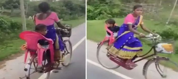 ఈ లోకంలో తల్లి ప్రేమ చాలా గొప్పది.తల్లి ప్రేమకు మించిన విలువైనది ఈ భూమి మీద ఏమి లేదనే చెప్పాలి.తల్లి తన బిడ్డలను ఎంతో కంటికి రెప్పలా కాపాడుతుంది. పిల్లలకు చిన్న కష్టమొచ్చినా తల్లడిల్లిపోతుంది. సమస్యల నుంచి వారిని బయటపడేసేందుకు, నిత్యం సంతోషంగా ఉంచేందుకు ఏమైనా చేస్తుంది.ఈ నేపథ్యంలో అమ్మ ప్రేమ, ఆమె సృజనాత్మకతకు సంబంధించి ప్రస్తుతం సోషల్‌ మీడియాలో ఒక వీడియో తెగ వైరలవుతోంది. ప్రముఖ పారిశ్రామికవేత్త హర్షా గోయెంకా ట్విట్టర్‌లో పోస్ట్‌ చేసిన ఈ వీడియోలో.. ఓ తల్లి తాను సైకిల్ పై వెళుతూ తన బిడ్డను కూడా వెనకాల జాగ్రత్తగా తీసుకుని వెళుతూ కనిపించింది. పైగా ఆ బిడ్డ కూర్చునే సీటు ను కూడా కుర్చీ తో గట్టిగా సెట్ చేసింది. వైరల్‌గా మారిన ఈ వీడియోను చూసి నెటిజన్లు భావోద్వేగానికి గురవుతున్నారు. అమ్మ ప్రేమకు హ్యాట్సాఫ్‌ అంటూ కామెంట్ల వర్షం కురిపిస్తున్నారు.సమాజంలో ఎంతో మంది తల్లులు పనులకు వెళ్లేటప్పుడు తమ పిల్లలను భుజాన మోసుకెళుతూ ఉంటారు.