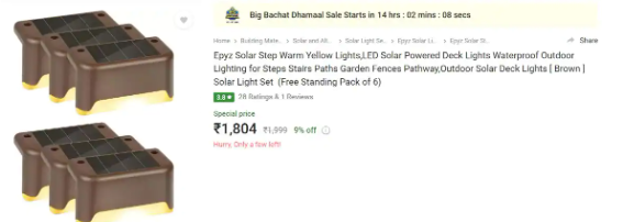 Now if we talk about the price, the price of these lights is Rs.1,804 in which you can buy 6 units, in these lights, customers have solar panels and motion sensors, batteries, and light sensors. These lights are easy to install and their weight is very less. In such a situation, it can be installed in any part of the house and you can also use it on the stairs of the house.