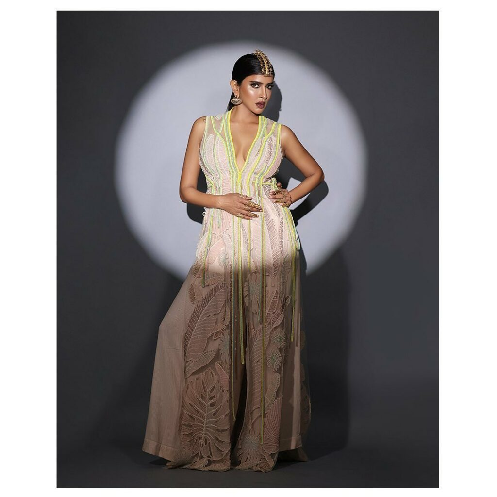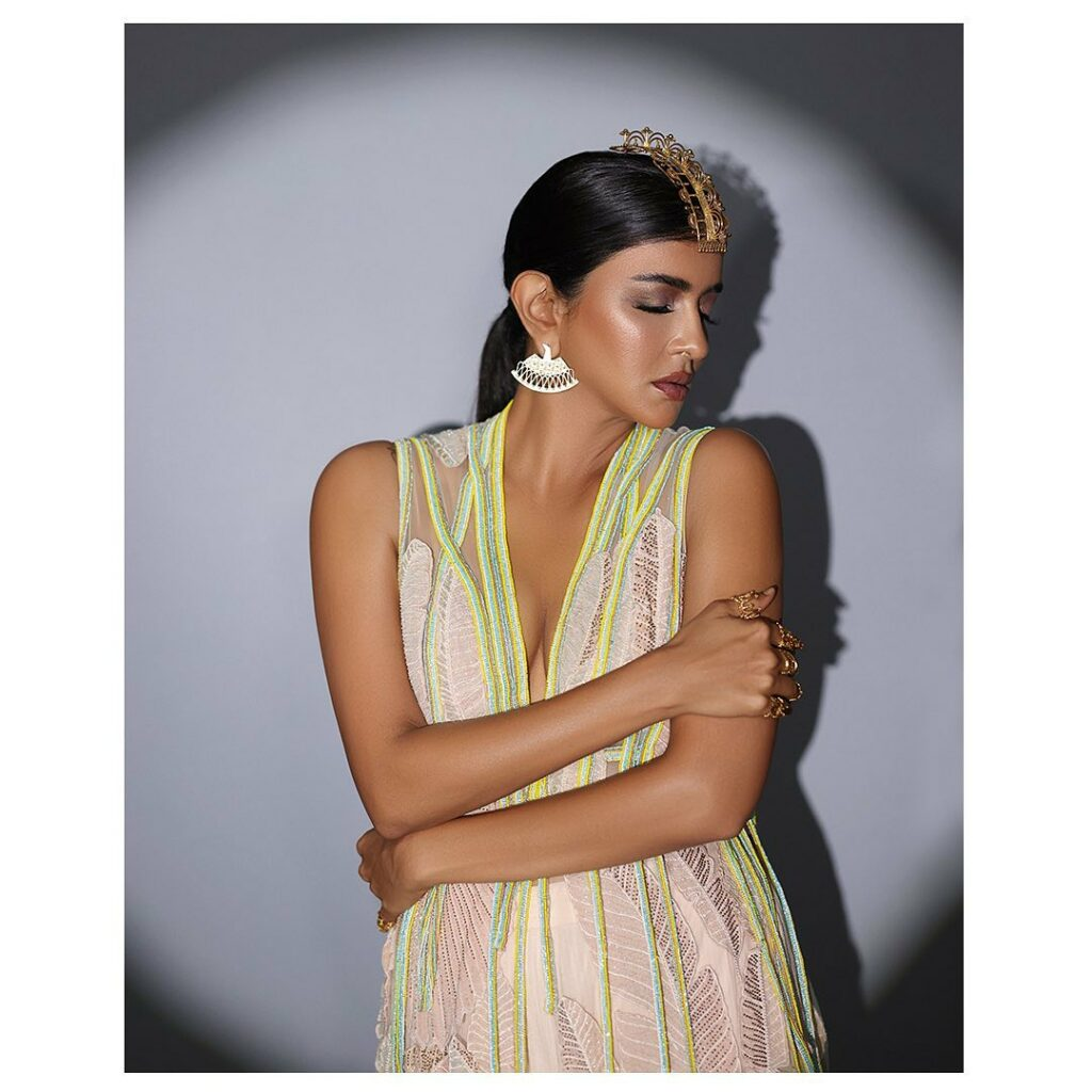 social media with her glamorous treat, donning a sleeveless couture gown with a deep cut neck. She rarely comes out as gorgeous on the big screen, but it appears that she is trying to look more fashionable in these photo shoots for social media. Although she won't obtain the main leads opposite big performers in these types of glamour sizzles, she may receive some substantial roles in art films.
