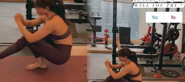 The attractive siren posted a video from a mumbai gym last night in which she can be seen exercising on the floor. In fact, she has demonstrated her ability to balance by lying back on the floor with only one leg on the ground and then standing up without never putting the other leg on the ground. That excellent act of balance displays the power of the back and glutes.