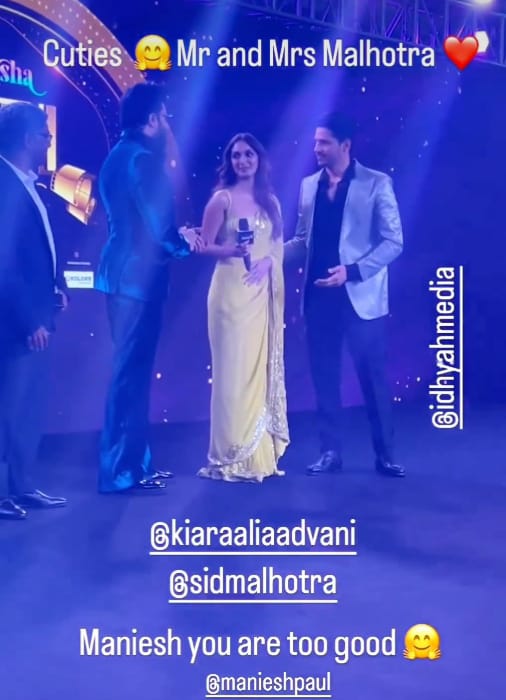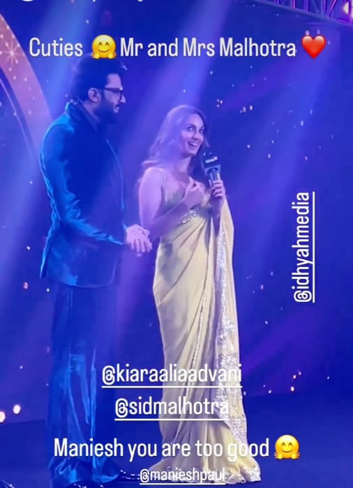B-town couple, sidharth malhotra and kiara advani enjoyed a lovey-dovey moment at an award show in Mumbai.
